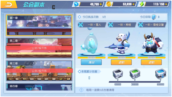 在公会玩法中,还设置了公会副本玩法,公会成员玩家可以通过挑战副本boss获取相应的公会贡献,每周也能根据累计伤害发放公会贡献。当然要是觉得怪物等级太低,还可以通过消耗恶魔果实,给怪物升阶,怪物等阶越高,掉落的公会贡献越多。