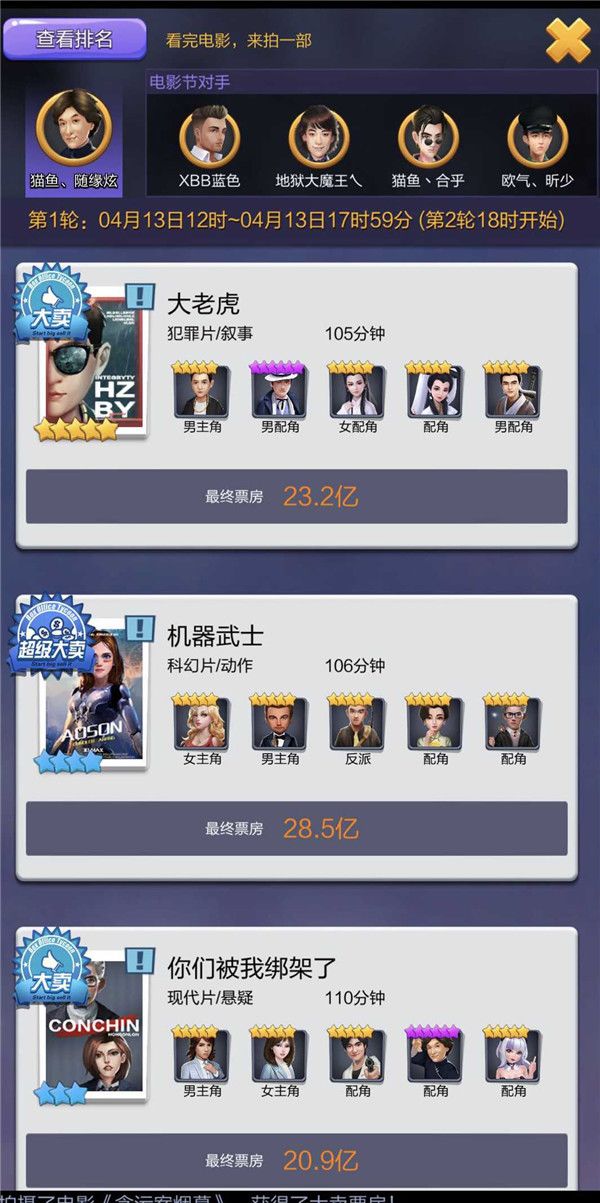 电影节还支持玩家朋友对每一轮每一部影片票房的分析