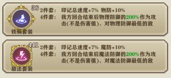铁骑敌法的4件套效果就是在回合结束时以防御作为攻击对防御最低的敌方造成30%伤害。