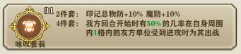 咏叹印记的4件套效果是,在我方回合开始时有50%的概率获得一个BUFF(能在状态栏看到的,触没触发咏叹就看状态栏有没有BUFF),在自身1格范围内的友军被攻击时代为出战。
