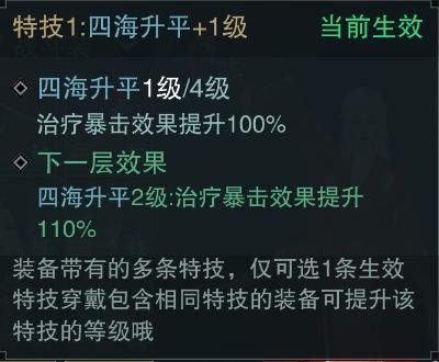 特技升级机制是不同装备上同时生效一样的特技。