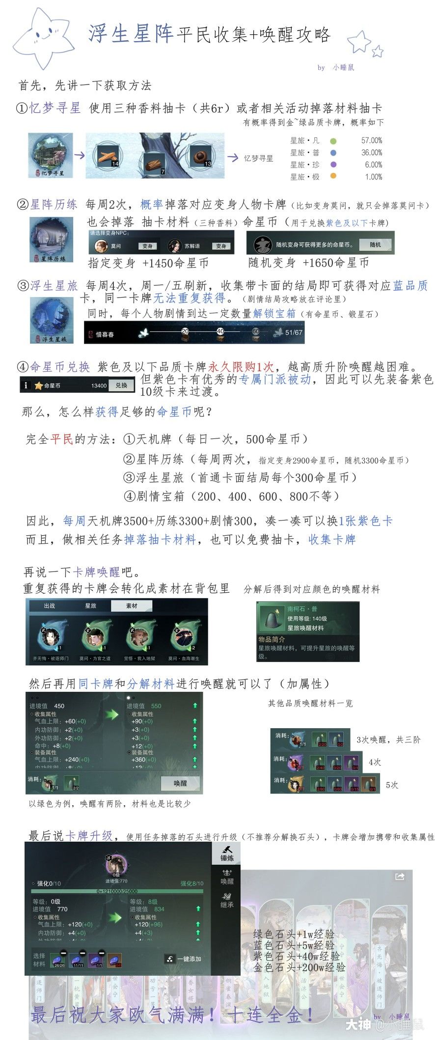 11、星阵:每张卡牌增加的气血各有不同,但优先考虑五质搭配再考虑其他属性等等。五张卡牌加起来的气血也是非常多的