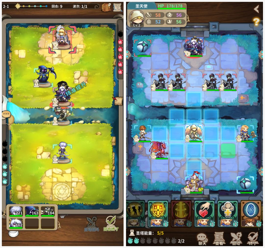 玩家对比新旧版本得到的最直观感受,是美术素材焕然一新。主界面布局的优化大大减少了玩家的操作步骤,只需一步即可轻松切换选项卡。重新设计的战斗界面成功地统一起功能的复杂性与盘面的简洁性,既直观,又干净,有效地保障了玩家对局时的专注度。
