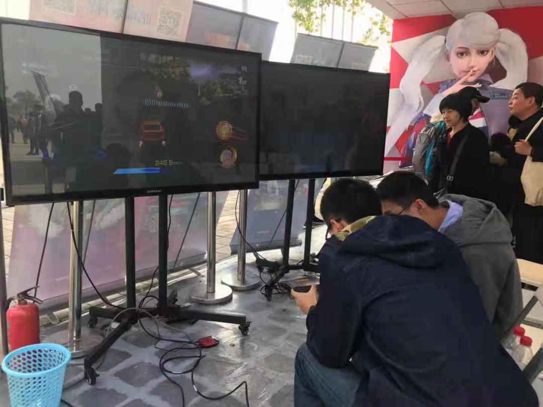 这里就是我们的展位啦,大家都非常热情参与到试玩当中。就连小朋友也能轻松上手,感受赛车的魅力。