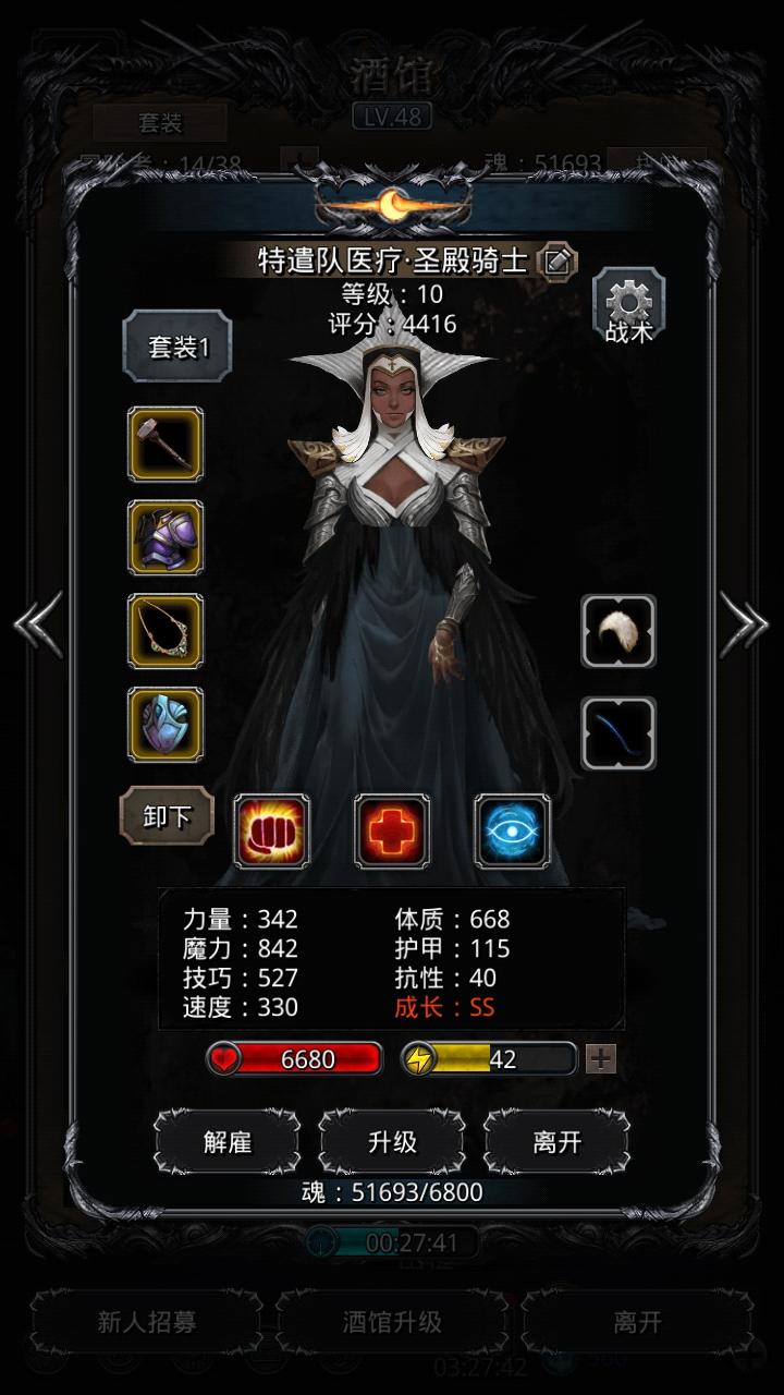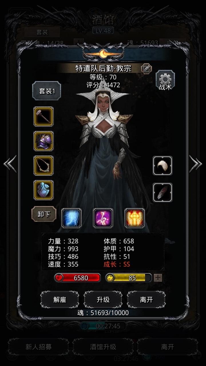 然后我又试了几遍,终于过了。我的阵容是:黑骑、夜莺(夜魇)、教宗和神官。