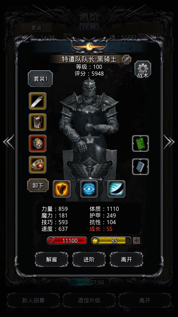 于是我回城重新配置了一下冒险队的装备,第一次的阵容是:黑骑、冰法、教宗和神官。后来扛不住BOSS的狂暴遗憾回城。