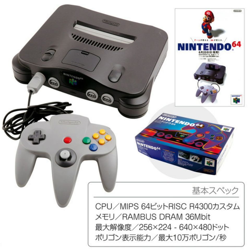 凭借SFC大获成功的任天堂迟迟不愿发售新的主机。当索尼、世嘉在32-Bit主机上杀得头破血流时,任天堂还以为自己能隔岸观火,直到被打到家门口了,才勉为其难地发售了与PS和土星同世代的最后一台主机——N64,从而成了最后一个使用卡带来作为游戏介质的家用主机。