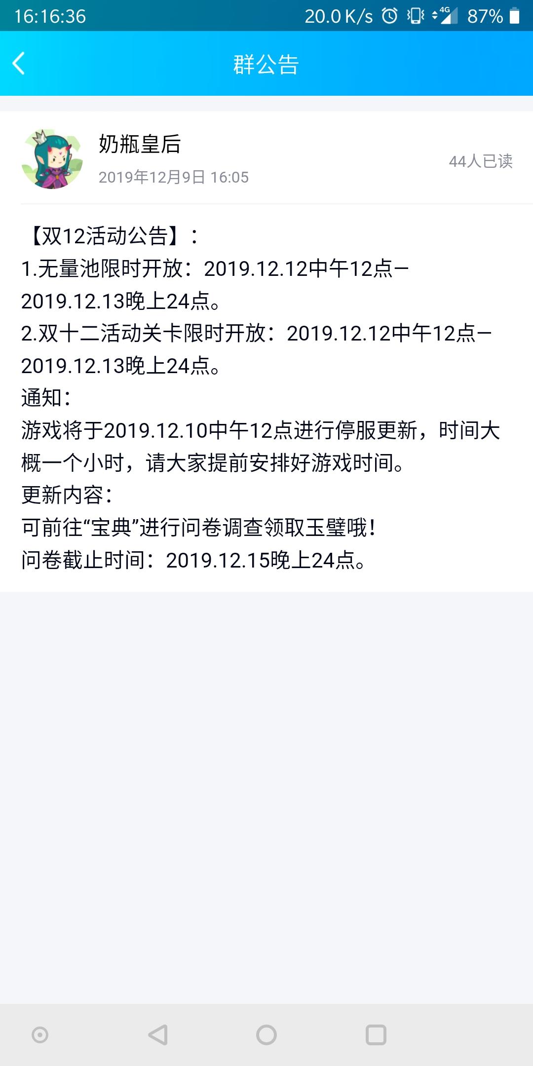 一、无量池限时开放。无量池内容和玉璧池三倍内容差不多,但是每一抽是75玉,十连是750玉,四十次十连去重保底一个怪。和扑克池保底方式很像,但是无量池保底范围是池子内金怪+魔皇子随机,如果池子不深很有可能随机到不是很需要的怪。而且无量池保底相当于3万玉抽了400次,扑克池3万玉抽500次,也就是说少了100个出货位。请萌新们一定一定看清楚自己适不适合抽无量池!二、双十二活动关卡限时开启,去年双十二关卡给的是100%掉落彩蛋怪dj,今年会给什么不详。三、月卡和玉璧的限时礼包应该不会少。