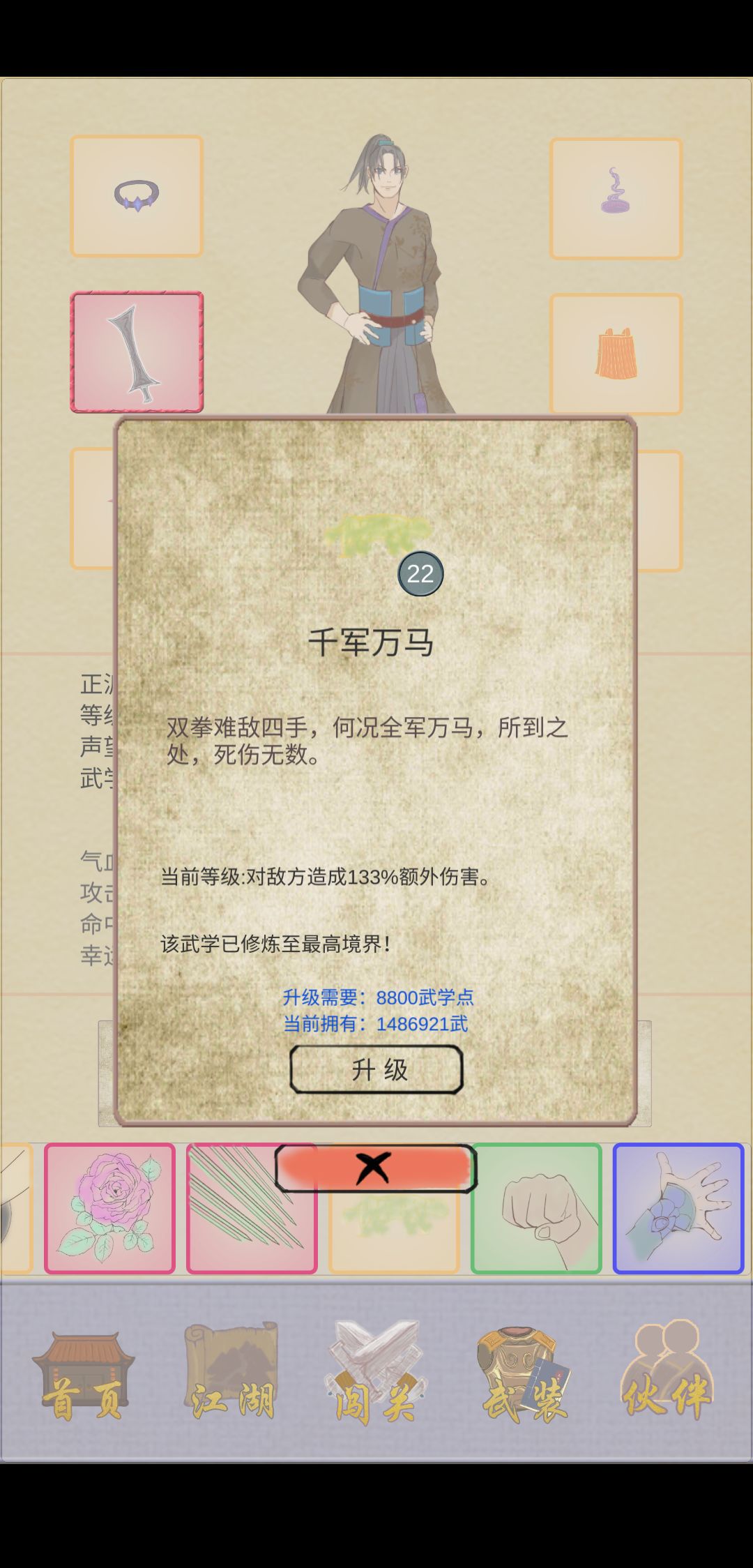 六扇门技能 千军万马(最高133%伤害,群攻,23级)