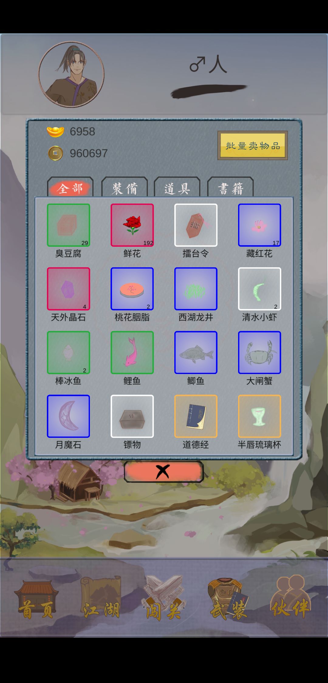 然后红旗插满地图,商铺开满地图,打造神兵,天机宝藏没啥东西,几万铜钱和500元宝,全图的人都挑战完,声望刷够10万,然后和队友绝交,恭喜你,达成所有成就,然后就可以退隐江湖了,最后附几张图