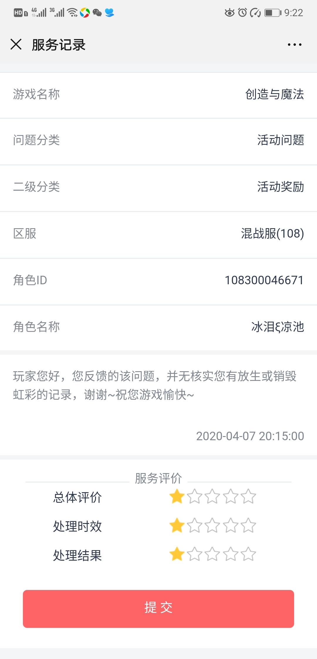 第一次问我要截图,可是我没有什么截图啊,停服一天哪有时间截图。第二次还回复我一些答非所问的问题,我问的是物品消失不是什么虹彩,严重怀疑都没有看我的消息,就算看了这就解决了?都不能继续提问直接显示问题完成。给我回复这样。快哭了。