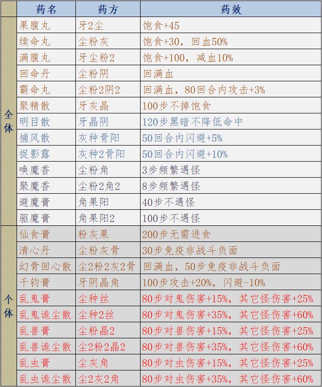 到这里已经介绍得差不多了,哪天心情好可能会补充和更新,也欢迎大家留言提意见。最后附上一张自己总结的全网最详细魔窟药方(不是最全,有些药我觉得没用就不写了)。