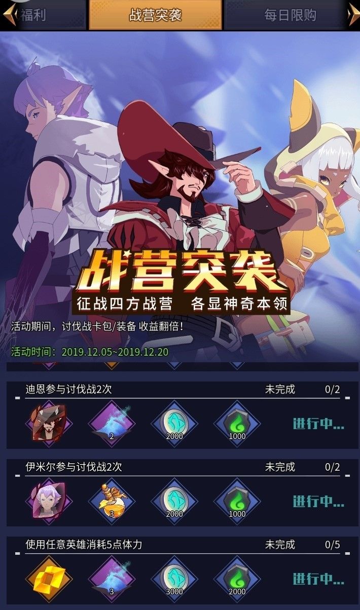 2. 新增「战营突袭」活动:参加讨伐战获得英雄碎片奖励