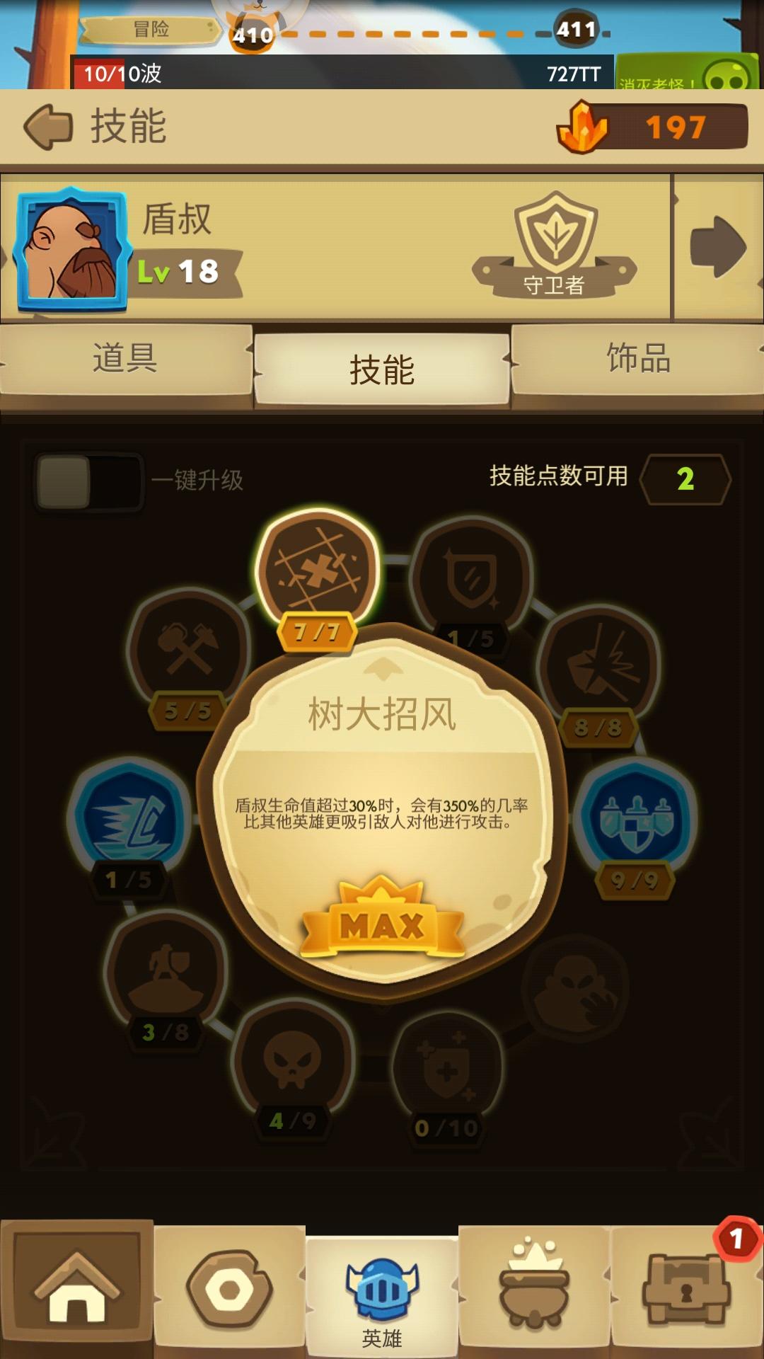 盾叔只要点满树大招风就行其他无所谓,另外配一个减buff刀男,都是根据当前能获得的技能点,你能点就点几点,