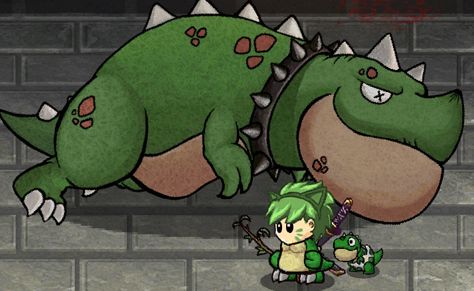 穿着恐龙的衣服,带着恐龙的崽,打败了恐龙本人,噢,此人还是绿头发!