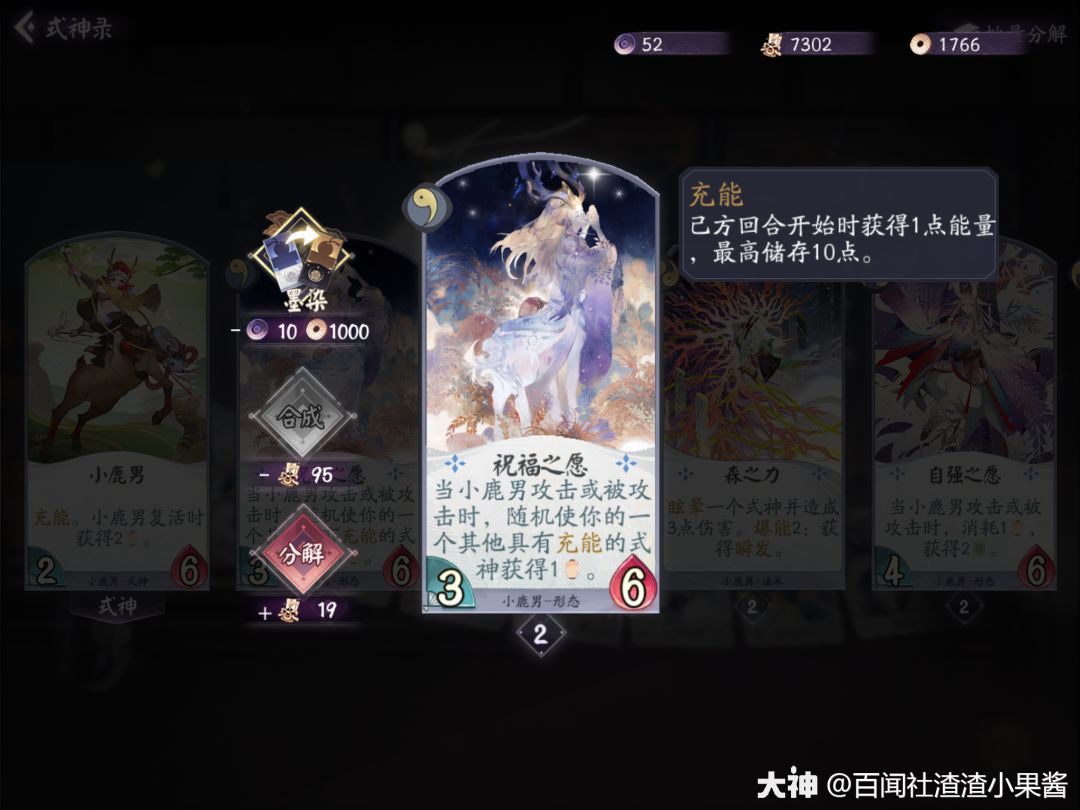 ③觉醒: 可以复活小鹿男,我们的卡组里小鹿男有4张形态,只要有了觉醒我们就多了很多复活。