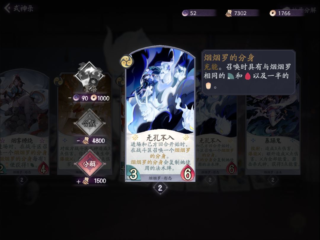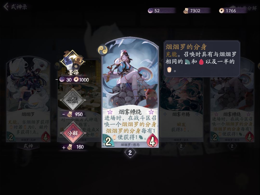 ②烟雾缭绕: 烟姐能量越多,分身的攻击也就越高,中期一个7-4的分身可以白吃任何式神。