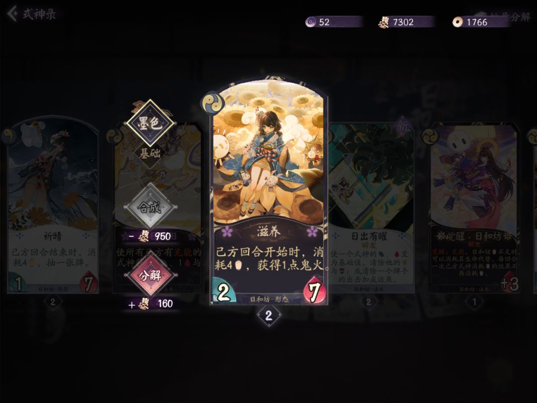 ②滋养: 日和坊最强的一张牌,二勾阶段我们就拥有了三火,可以更早打出原本莹草三勾才有的节奏。