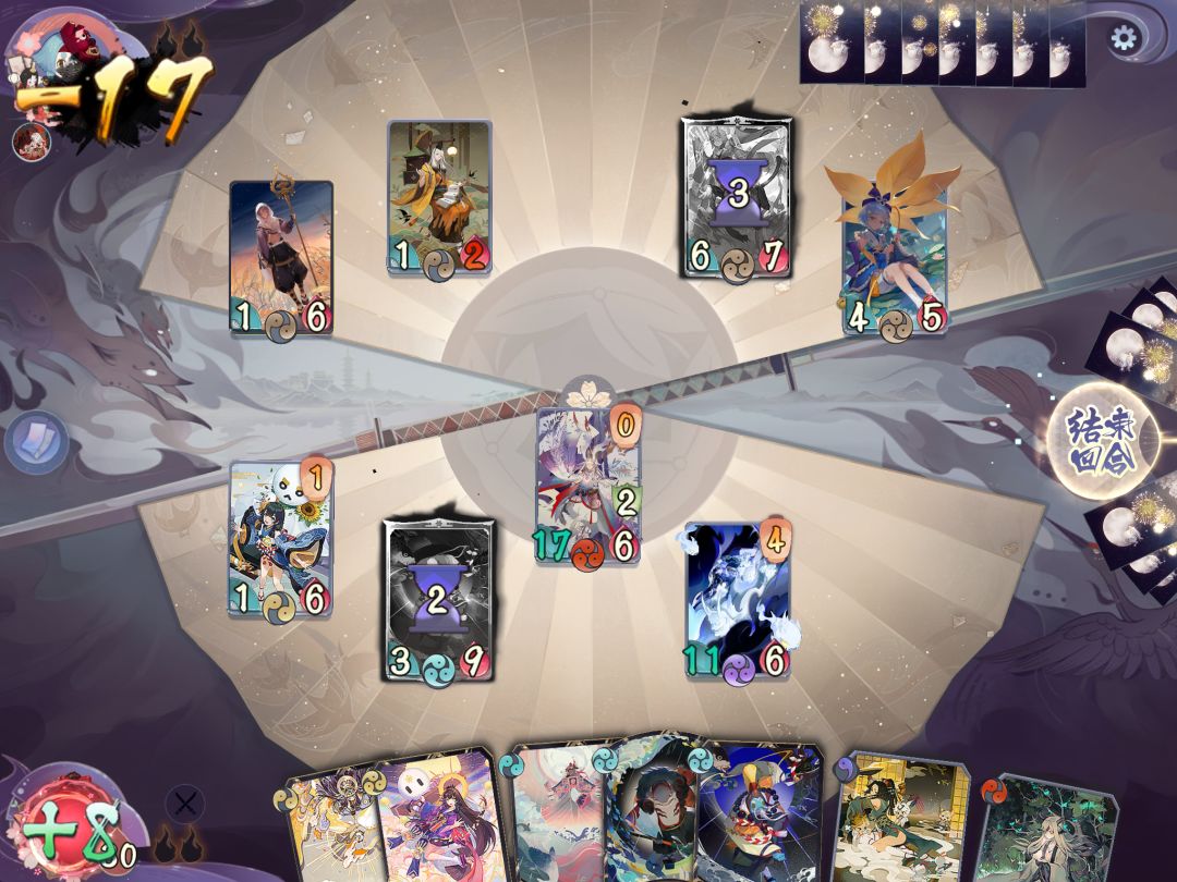 前期: 根据手牌和对战卡组,决定哪一位充能式神先点亮,因为每一点能量都很关键,所以请结合手牌仔细思考。