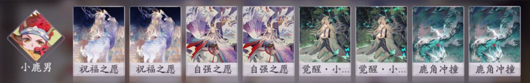 【小鹿男】:第二张【觉醒】和第二张【鹿角冲撞】或【森之守】。第二张【祝福之愿】换【生生不息】 【日和坊】:第二张【冬日暖阳】换【炎阳】或者换第二张【觉醒】。