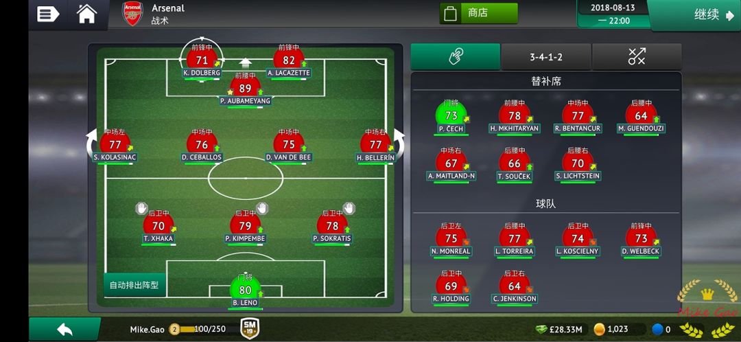 战术板如上图所示进行调整,有原先的连续传球改为跑动防守,多变走位改为混合。把奥巴梅扬放在进攻核心位置,感觉我厂又强了很多。第一场比赛就打出了超大比分,真是让人很期待后面会发生什么。