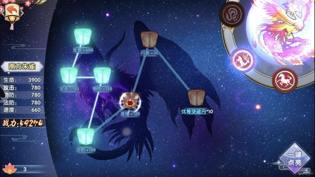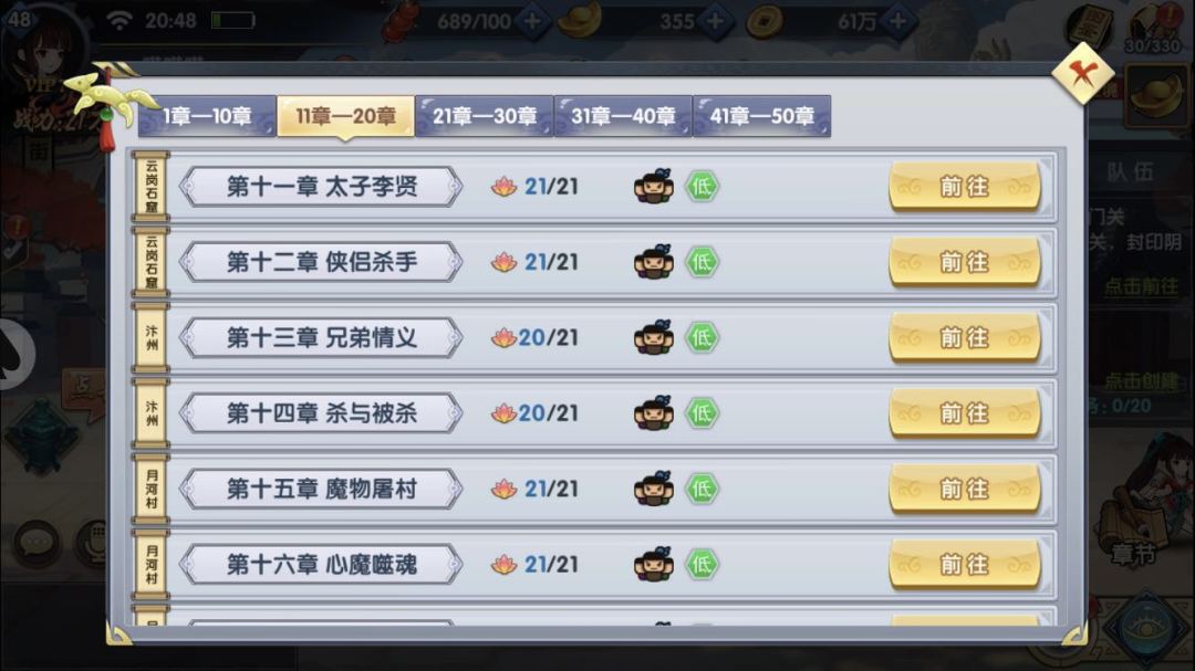点击右下角的“章节”按钮,能够看到自己所经历过的章节,大家会发现有很多章节还没有拿到全部的天命星。