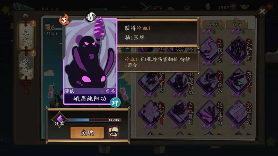 【峨眉纯阳功】抽牌卡。兰花手用完,抽出兰花手。可以换三生绕指柔
