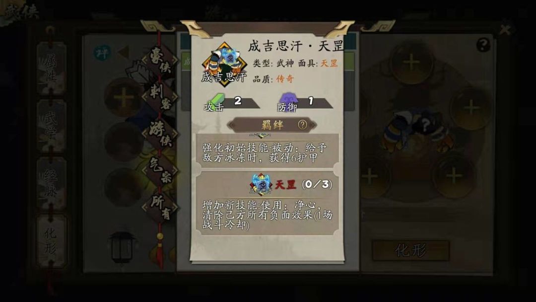 历练商店兑换阴武学,提供冰冻,成吉思汗获得护甲,蜜蜂打出伤害