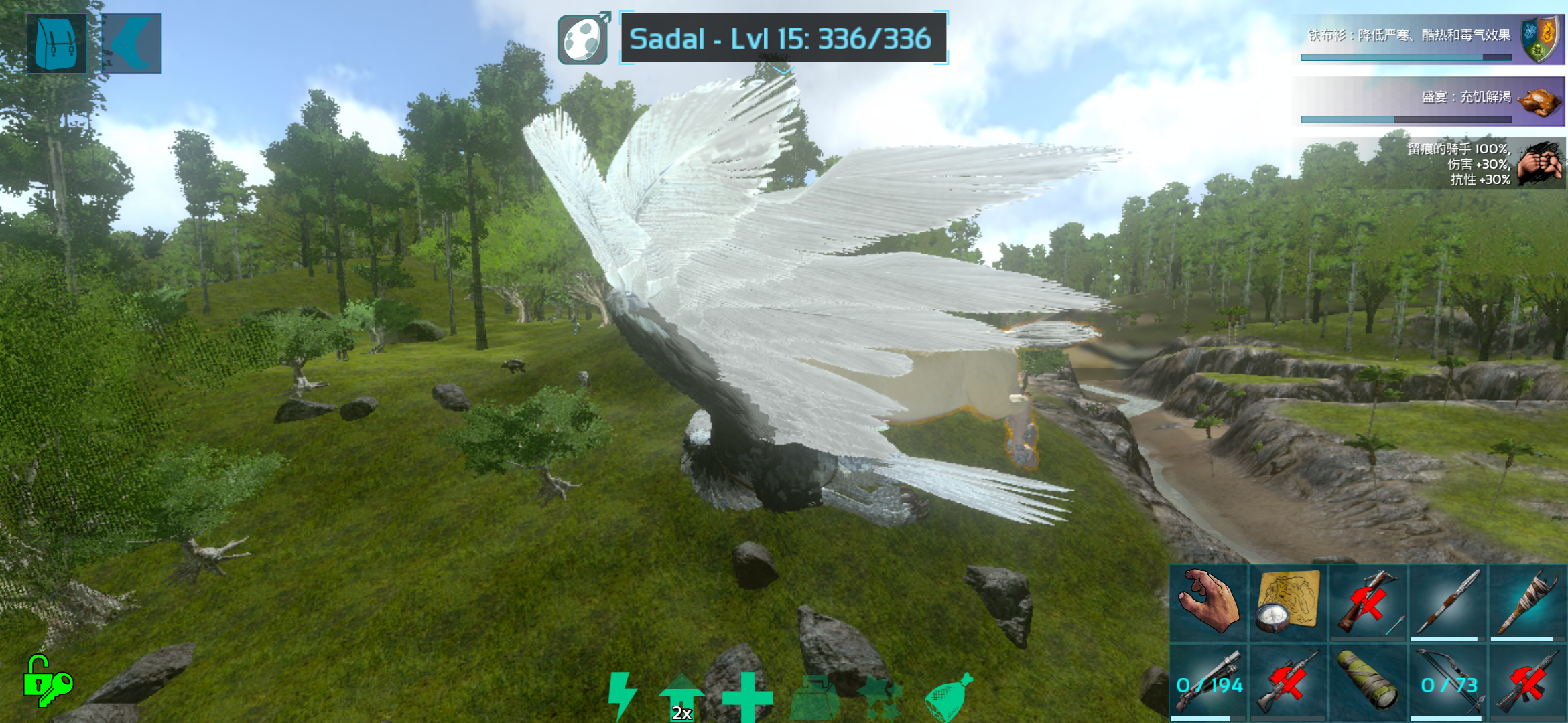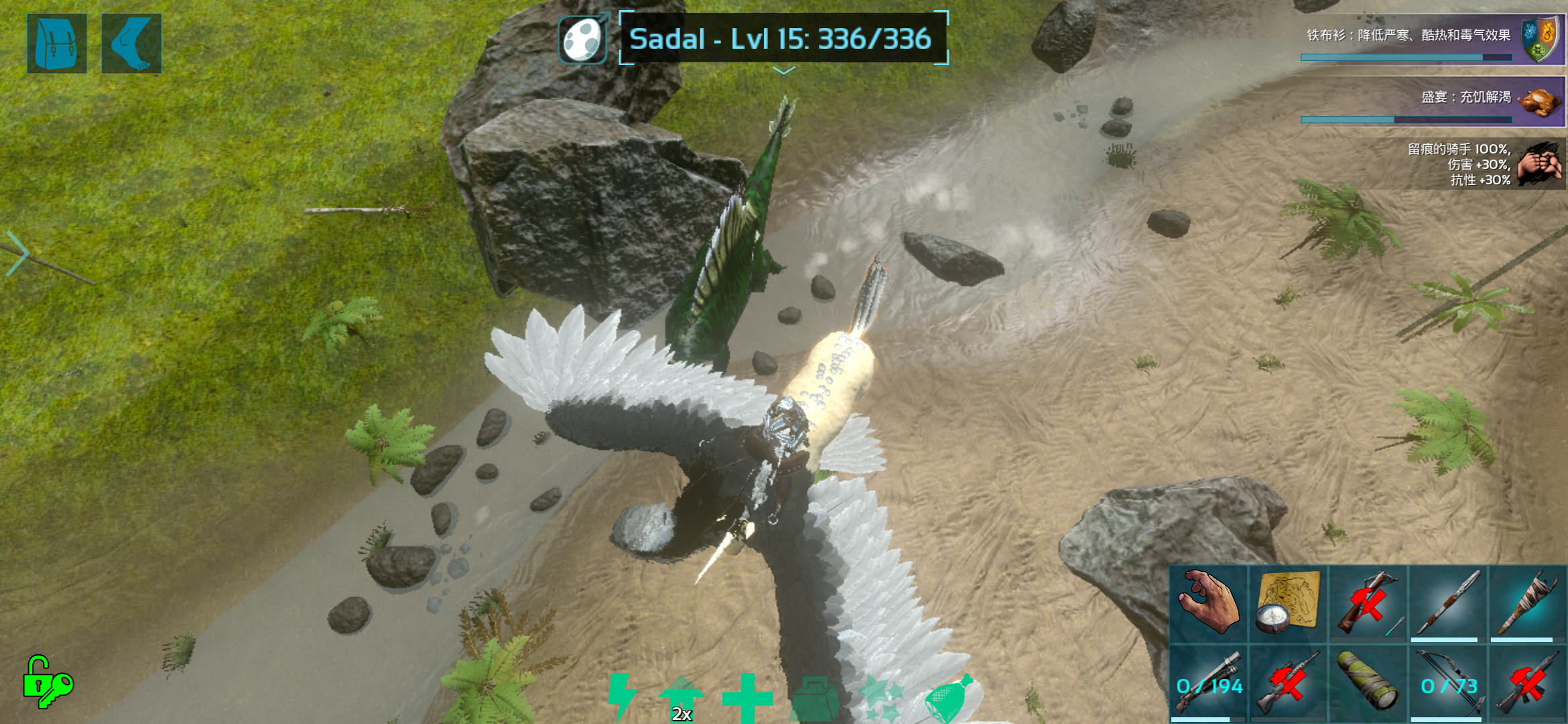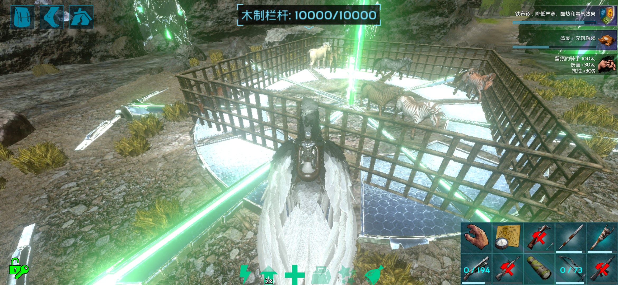 这是我第一只独角兽,我的巡捕方法就是把全图野生的庞马给抓起来围着不训,自然而然就不刷庞马了,然后独角兽就刷新了出来,旁边还有一只棘背龙,就在绿方舟后边 通往海岸的方向