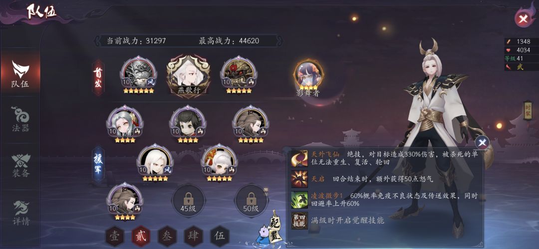 开局保底出了武君,于是就奔着风队走了,看论坛说剑公子不好用,说九婴厉害,我就兑换了九婴,竞技场被一路教育,现在就变成这样了,等45还能再上个麒麟