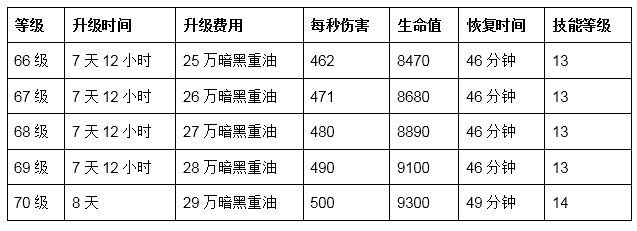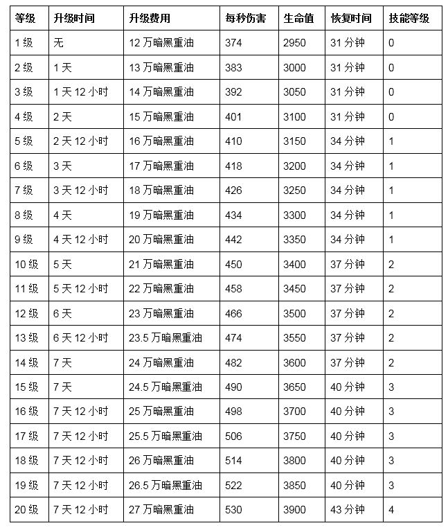 1级花费:120,000暗黑重油