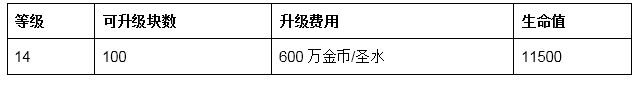 城墙可升至14级(最多100块城墙可升至14级)