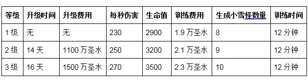 只要大本营达到12级,即可升级训练营,解锁冷冰冰、毛茸茸、脾气还很暴躁的大雪怪啦。这个毛发凌乱的大家伙力气很大,会不紧不慢地朝目标走去。他背着一个背篓,里边装着他在雪山上悉心照料的小雪怪。只要大雪怪受到伤害,他的伙伴小雪怪们就会从舒适的背篓里跳出来,让敌人好看。要是大雪怪倒下了,剩下的小雪怪将倾巢而出,尽情捉弄它们的敌人。它们会跳过城墙,对敌人造成伤害或解开他们的鞋带。
