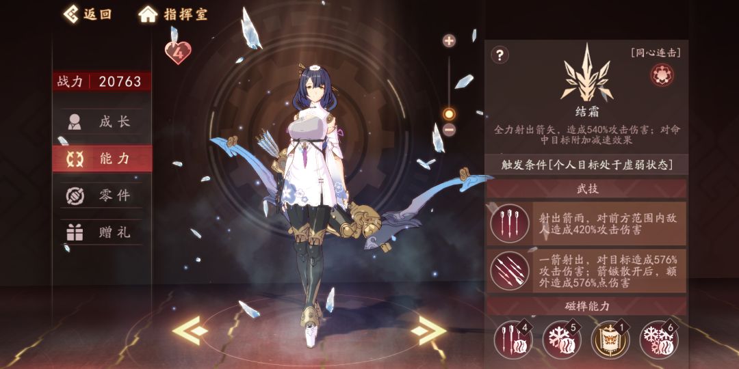 每个木甲拥有4个被动技能,其中制式木甲默认全部解锁,但无法升级。实验型木甲依据好感度解锁,可以在书室中升级。部分升级后的被动技能非常强大。实验型木甲还拥有好感度系统,在赠礼中给木甲小姐姐赠礼,不断会解锁新剧情,获得高额回报,还能获得生命属性加成哦!!!