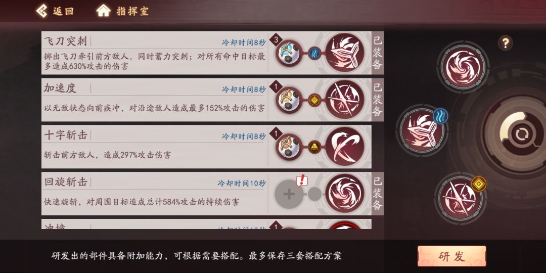 飞刀掩护(金核心),飞刀突刺(水核心),速攻(木核心)