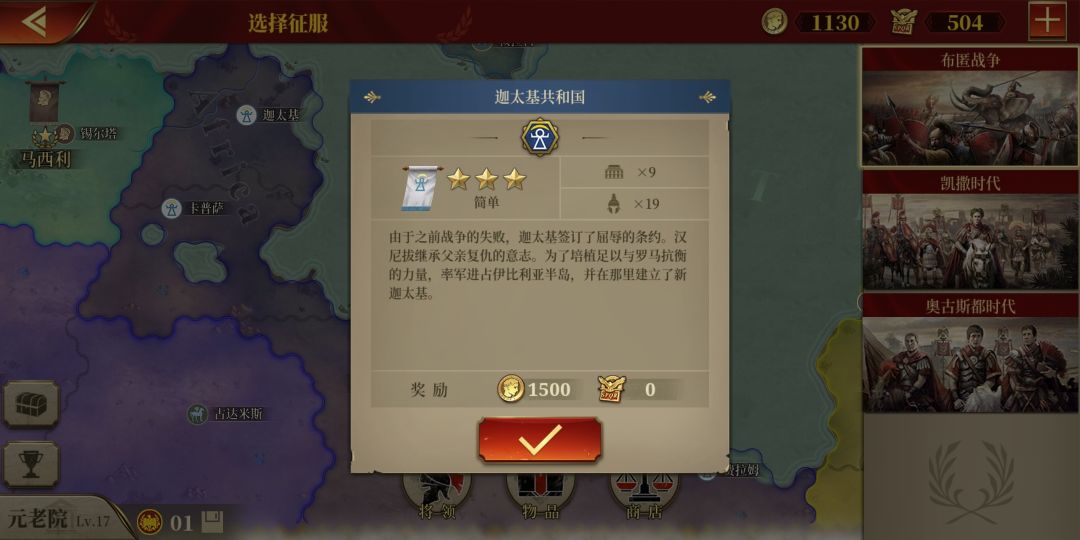 等罗马拿下罗马城后的时候就造兵去打昔兰尼,西边图尔德泰尼、迦太基俩虎的一批。(也可以像其他大佬说的守岛,具体用那种策略都可以;看你自己选择。)