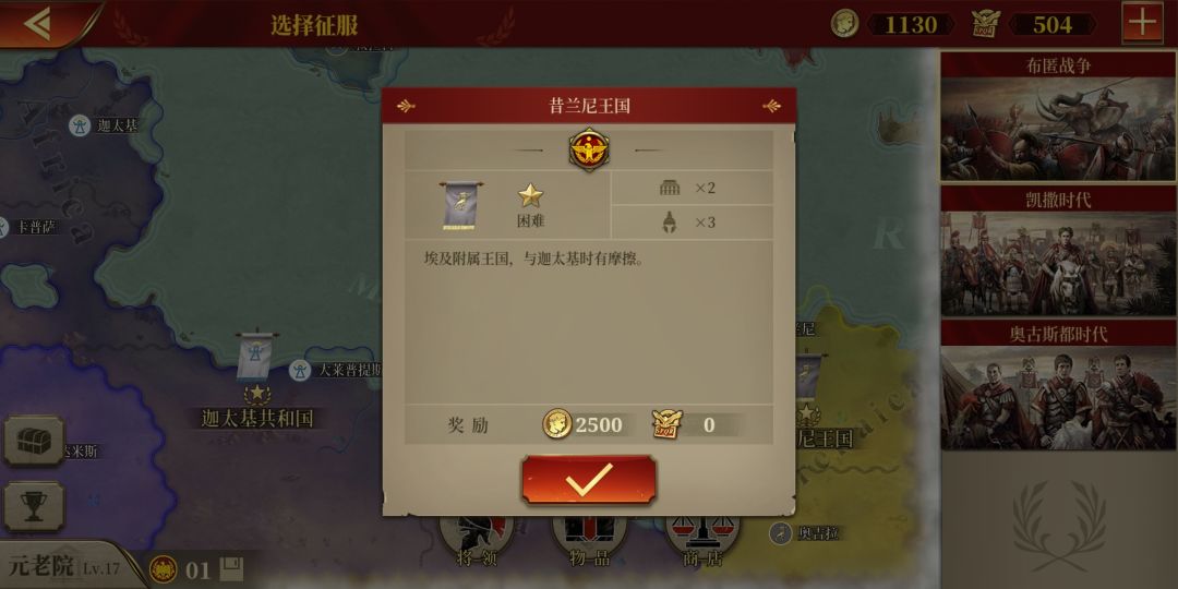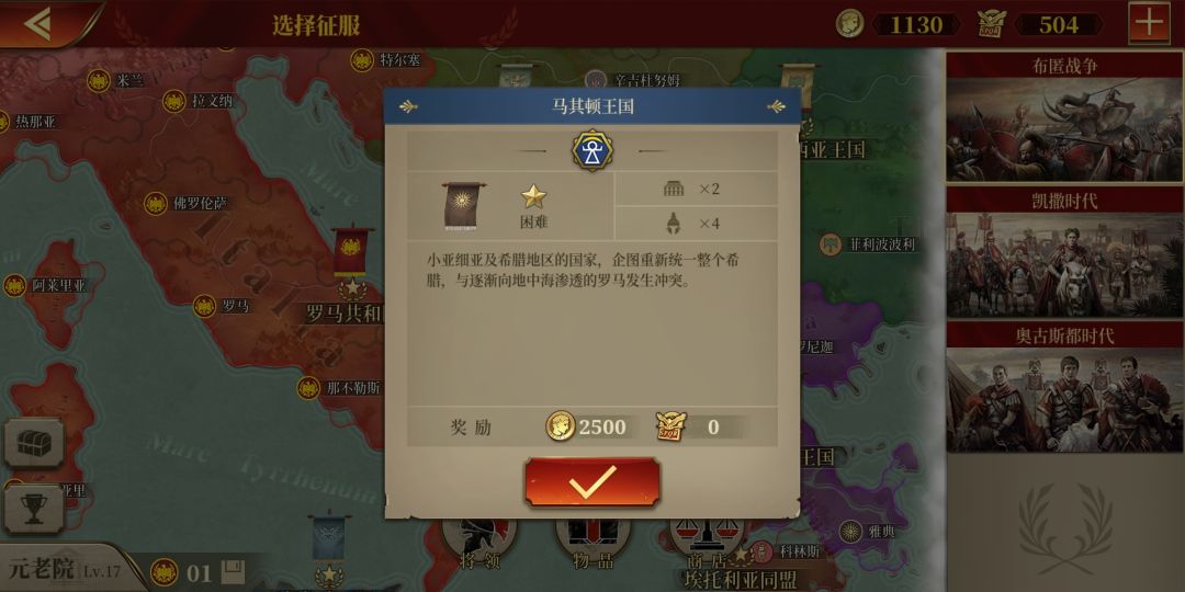 前面给罗马爸爸打钱推死奥德里西亚、伊利里亚后就给昔兰尼打钱。