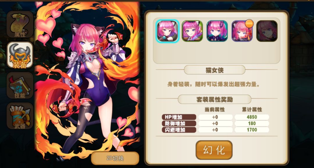 时装不但可以改变角色外观,还能大幅度增加角色的属性。所有时装属性增加效果是累加的。所以可以随意更换中意的时装,不用担心属性的变化,非常简单实用。不过时装需要使用钻石才能购买。