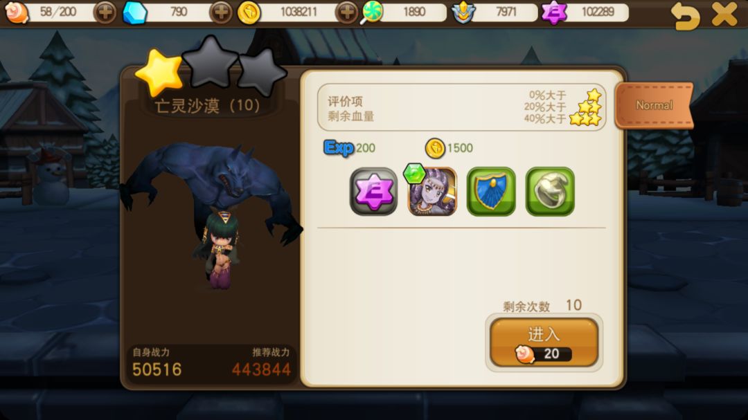 每个章节的第九关和第十关,会掉落宠物碎片和宠物装备。难度越高的关卡,掉落的奖励越好。