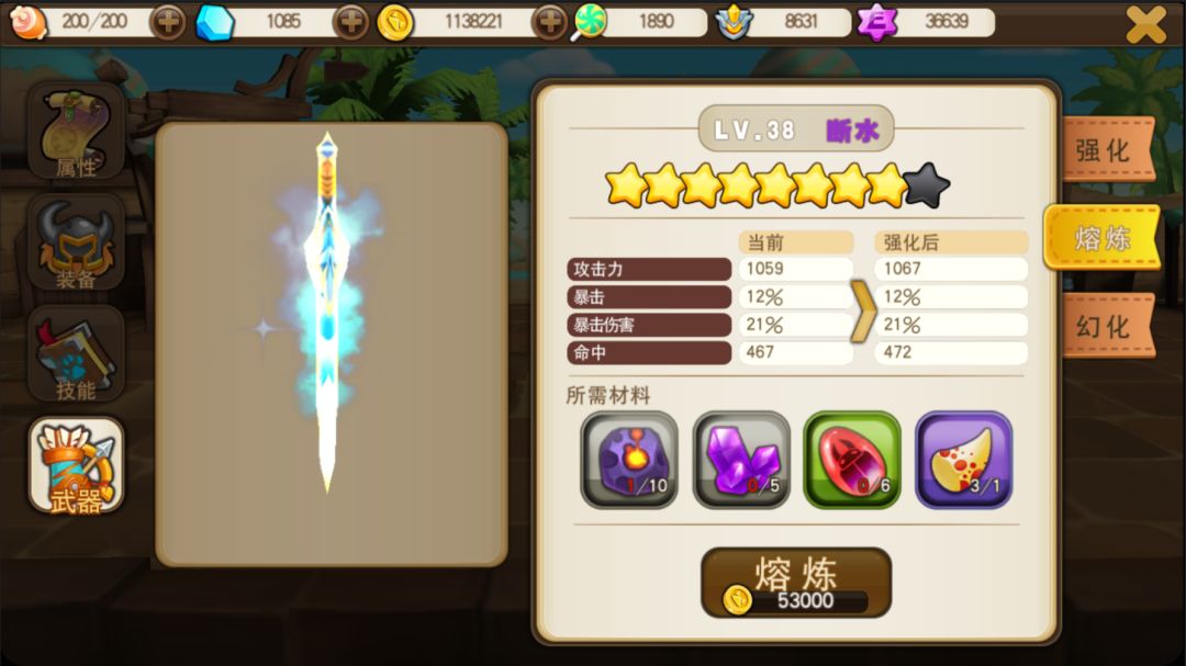 武器熔炼在提升武器属性的同时,还能带来外观上的改变,非常炫酷。熔炼需要的材料在威望商店可以兑换。威望可以从斗神无双副本还有竞技场排名奖励获得。