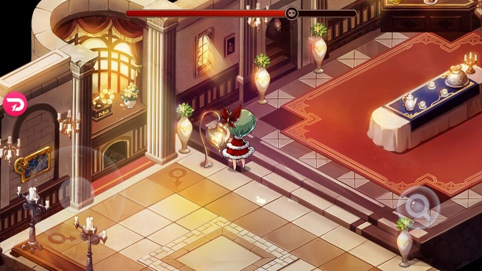 剧情触发后,需切换到黑暗世界看到蝴蝶飞走,再切回现实世界过桥后,切黑暗世界,继续看到蝴蝶再飞,存个档,跟上,粉蝴蝶飞到了食人花旁边,等我们走过去,等一下,藤鞭全部消失,食人花变成莱奇魂火,解锁新场景,宴会厅。