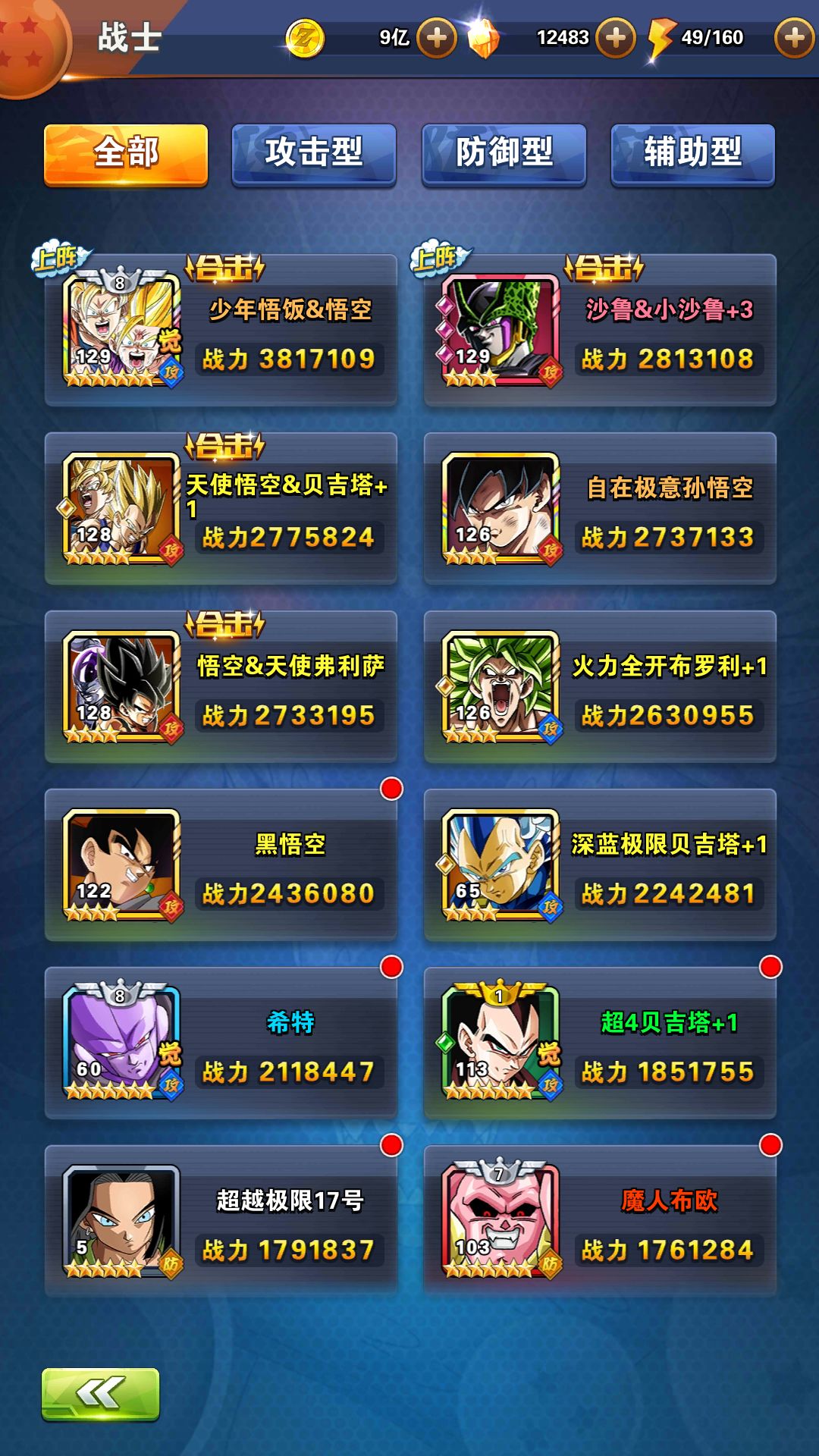 【攻略帖】安卓151区【宇宙第一装比王】我也玩了四年的龙珠了在这里和大家分享一下我个人的玩法。首先: 1.需要把基础稳固了,所谓的基础是指能拿到卡全部拿了,然后把幻化和速度都升到平均值,然后基本上都是新卡比较厉害,(资源允许或者不允许)想要极限或者不极限都可以,最主要的就是在龙石(或龙钻)充足的情况下而且战力达到标准的,可以参与限时闪卡宝箱,(在分数达到限时闪卡宝箱规则的)从第一名到第十名可以出卡。 2.尽量不要浪费资源,尽量避免重生,过度使用资源等,造成资源紧缺。 3.每日任务全部做完成(除龙石任务外)尽量多获得一些资源。 以上三点就是我个人的游戏心得,不喜勿喷。附上战力图