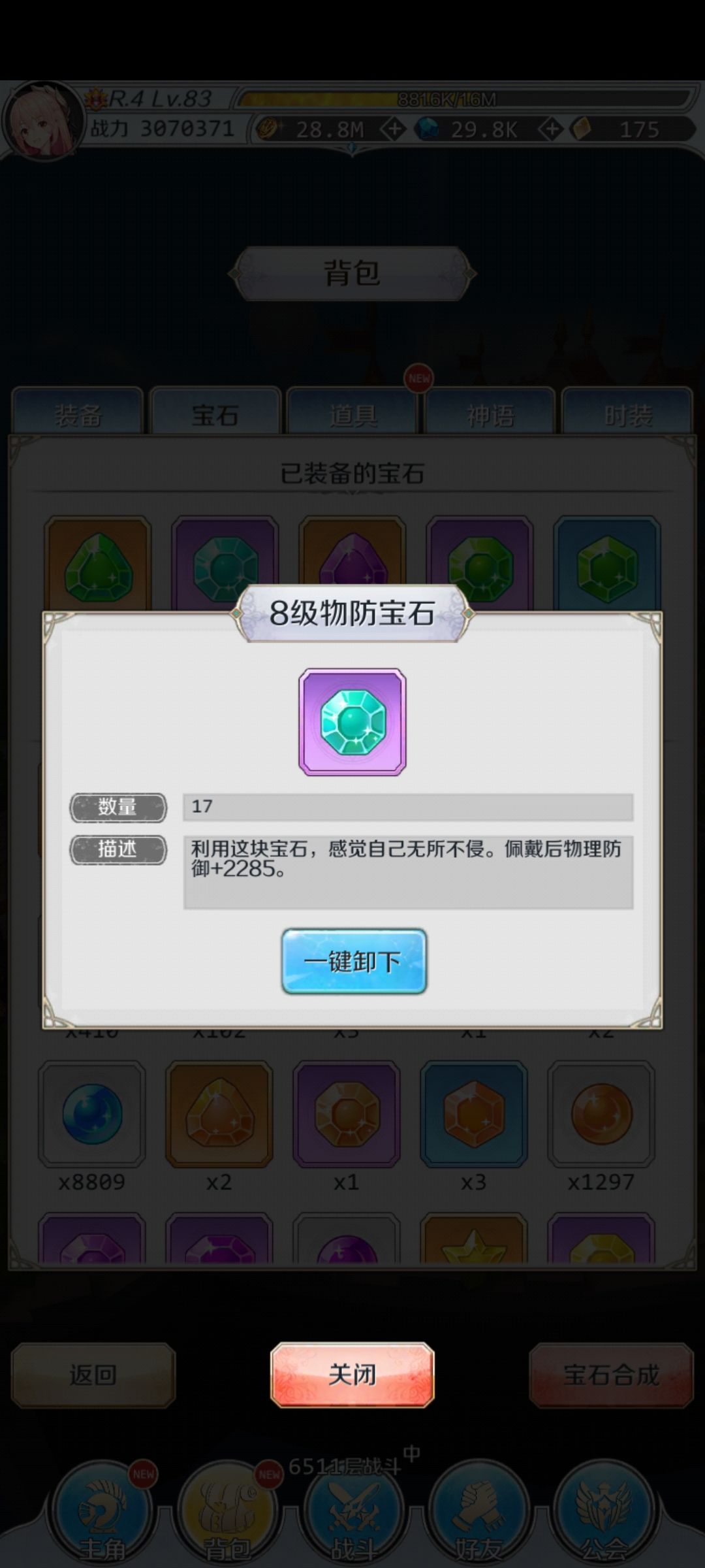 到R4宝石都是补缺的,我就是差那些物防,就得全身插满,有毛病吗?有毛病!哈哈哈,那就骂我吧,别骂物防宝石,我心疼⊙﹏⊙