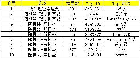 二周年超级幸运奖:第200楼可得到【TapTap两周年综合大礼包】一份!