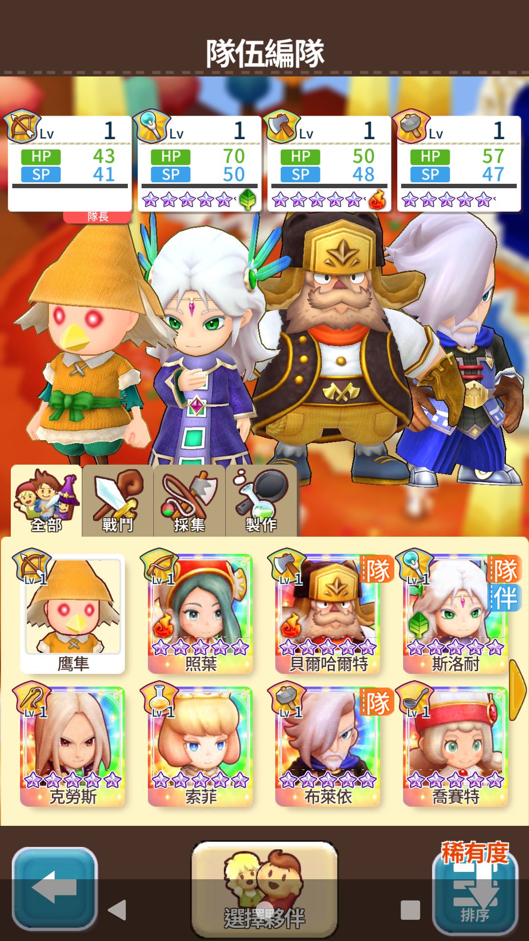 第二个:战斗五星都有,但都没觉醒,也没采集这些五星,也没专属武器