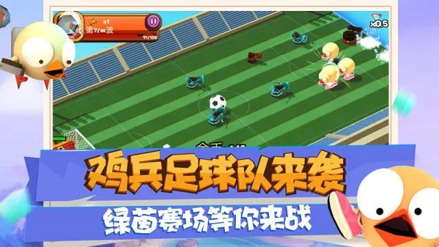 鸡兵们已经组成球队,穿上球鞋,踏上赛场,等着和你来一场精彩的球赛,带你体验《攻堡鸡兵》的最高规格赛事。