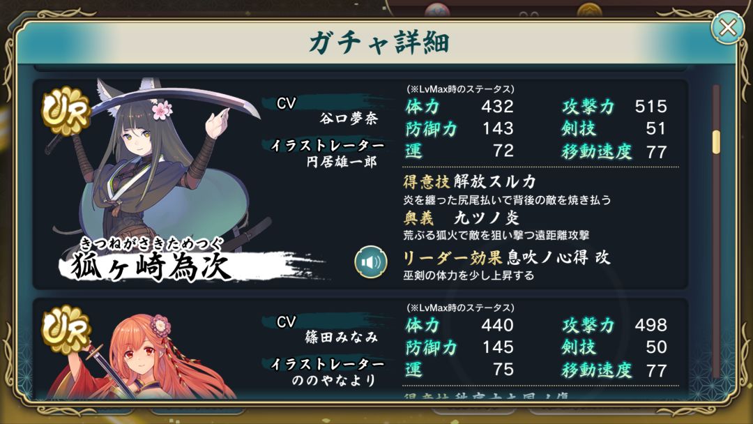本游戏的角色——巫剑,仅仅分为两个稀有度——SR与UR。