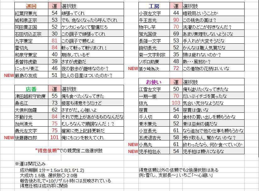 上图则是每个巫剑最擅长的类型及正确应援选项,其他类型虽然也可能成功,不过失败和大成功概率更高/更低。