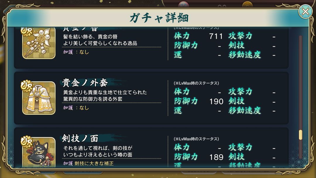 上次讨伐特务的活动兑换装备。满破的数值与卡池的UR发簪满破无异,且携带加护 受到致命伤害时可强制将体力锁定为1(1装备限制一次),也是让人感觉重要度不错不过暂时用处不是特别大的装备。