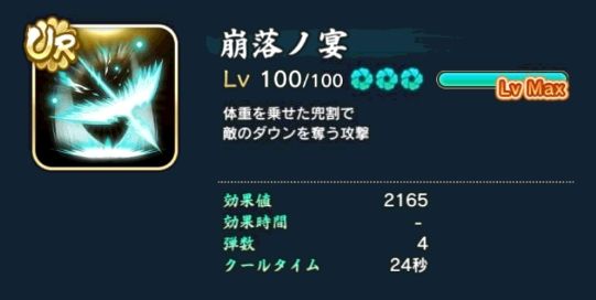 得意技的效果是向前冲一小段距离之后向后进行三次空中回旋踢回到原来的位置,无敌判定一般,容易在出技能时被打,且因为疾风是最脆弱的类型,不是很推荐使用。